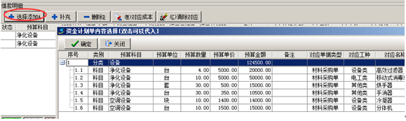 例如下圖所示:預算分類為設備,明細科目為凈化設備,對應的名稱可以為高效過濾器、移動式消毒車、烘手器等。
