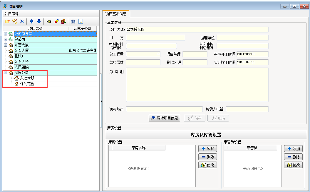 情況分析: 在工程項目資質(zhì)掛靠管理中由于本工程款資金流向是經(jīng)過我公司的,正規(guī)的管理辦法是在【項目維護(hù)】中建立一個項目來管理,如下圖: