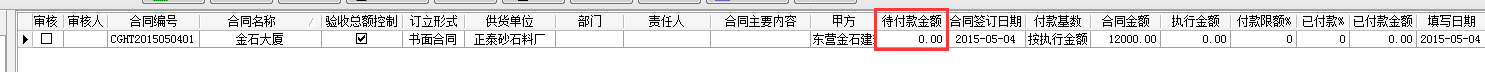 當(dāng)我們選擇執(zhí)行金額時(shí),沒有驗(yàn)收記錄,待付款金額顯示為零。