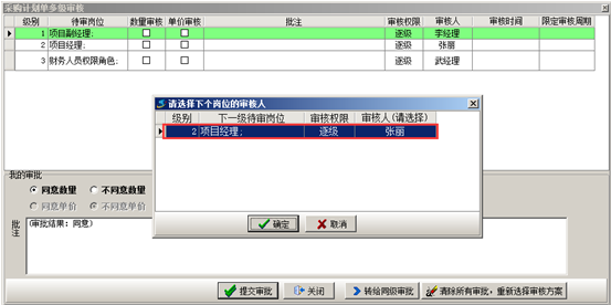 單據的創建人在發起審核的時候選擇“自定義審核”,確定之后選擇下一級審核人,如圖;