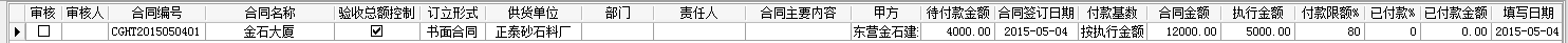 我們建立一個總價為12000的采購合同,付款基數按執行金額,付款限額為80%。如下圖