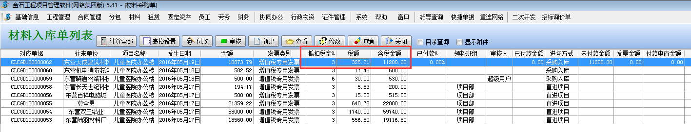 2.在營改增后.以前版本做的單據(jù)如何實(shí)現(xiàn)價(jià)稅分離調(diào)整?我們以材料入庫單(即材料采購單)為例,進(jìn)行演示: