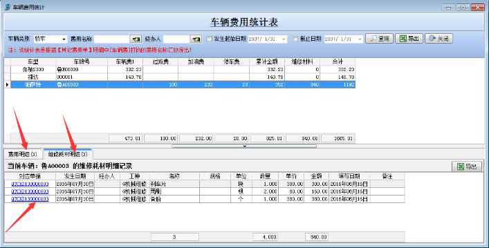 【材料管理】→【其它出庫(kù)單】,出庫(kù)類別→車輛維修→車牌號(hào)