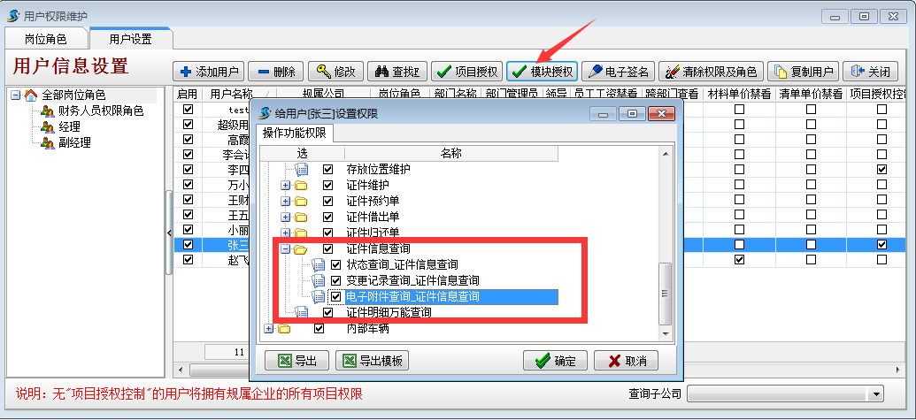 證件管理信息查詢權限設置
