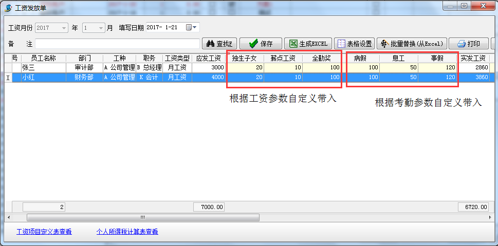 在工資表中我們已經做了工資參數,但往往因一些公司工資計算方式比較特殊導致不夠用,現增加了工資自定義功能用法如下
