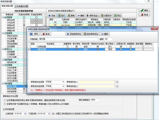 1、在審核流程設置中維護好材料計劃單的審核方案,建立新方案(方案名可改),具體操作如下