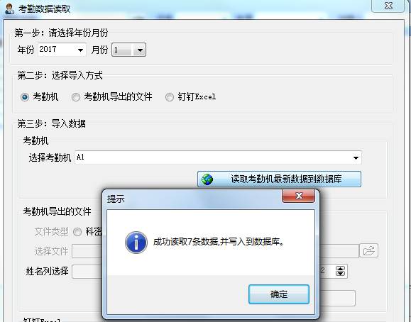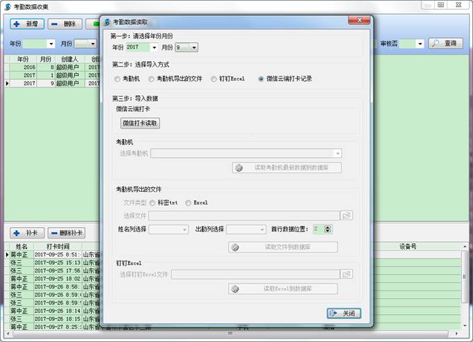 點(diǎn)擊新增,彈出考勤數(shù)據(jù)讀取界面,如下圖,