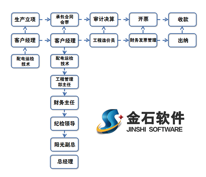 金石軟件工程師通過陽光電力公司相關(guān)領(lǐng)導(dǎo)的詳細(xì)溝通后,結(jié)合實際情況,對陽光電力管理流程進(jìn)行了全面的梳理,操作方案流程如下: