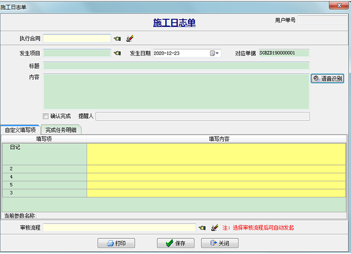 施工日志是施工方用于記錄工程項目真實情況,反饋一線信息的重要資料,也是施工管理軟件中進度來源,金石軟件的施工日志模塊為每個任務(wù)提供明細反饋,并根據(jù)工地的實際情況,設(shè)計了語音識別功能,用戶可以通過語音簡述項目情況,語音自動識別為文字,減輕了工作量和工作難度。