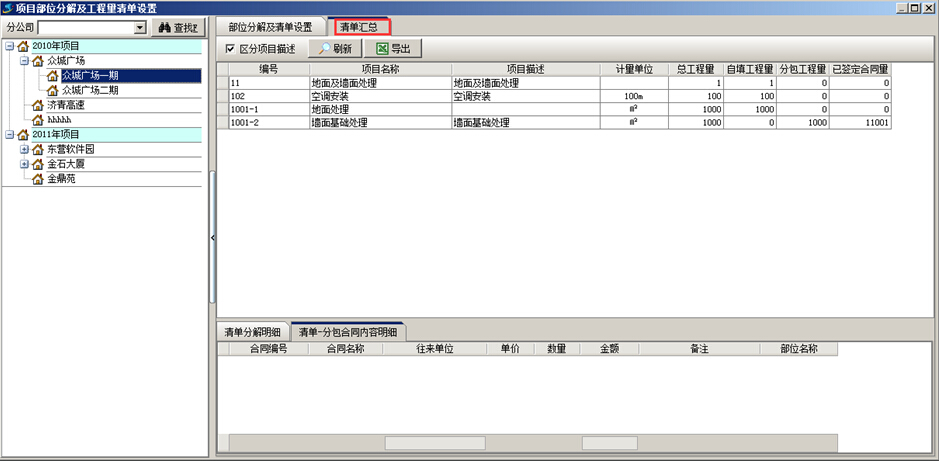 “分包工程量”:填報方式為“分包驗收”的工程量。“已簽訂合同量”:填報方式為“分包驗收單”的清單所建立的分包合同量。