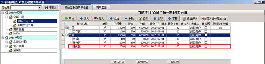 在《金石工程項目管理系統》中,進行項目部位分解時,可按照層次或級別進行分解,即添加“平級”或“子級”。