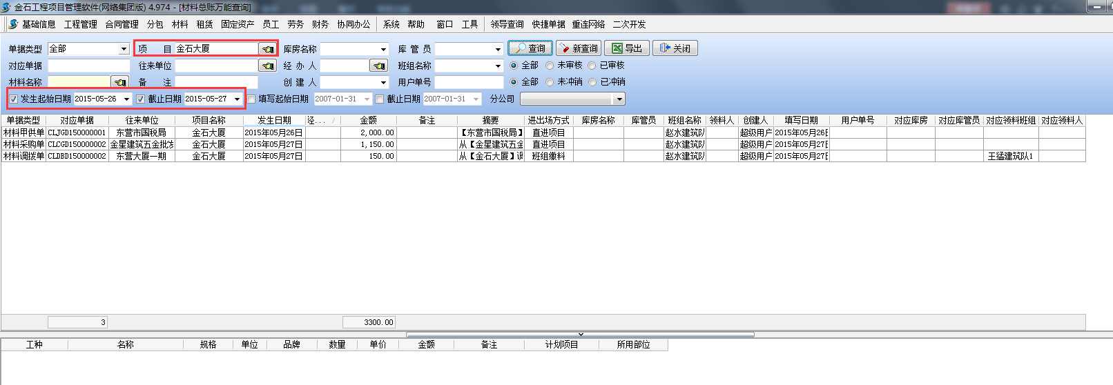 3.1工程項(xiàng)目管理系統(tǒng)中 材料總賬萬(wàn)能查詢