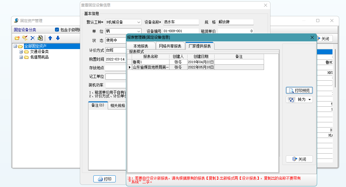具體操作:在設(shè)備維護(hù)中選擇設(shè)備點(diǎn)擊打印,根據(jù)設(shè)計(jì)的報(bào)表樣式生成打印預(yù)覽