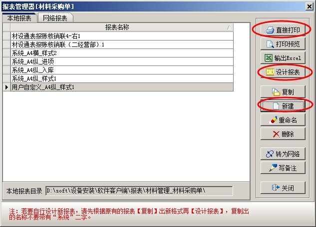 1. 鼠標單擊打印按鈕,彈出報表管理器,如需打印,選擇列表中已設計好的報表【點直接打印】按鈕即可。如需修改報表,選中報表后點【設計報表】按鈕即可。