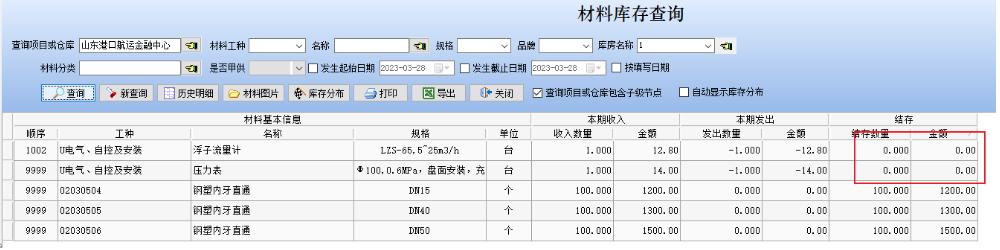 最后點(diǎn)擊保存按鈕,此時我們再去庫存查詢中查看結(jié)余情況,如下圖所示,會發(fā)票金額歸零。