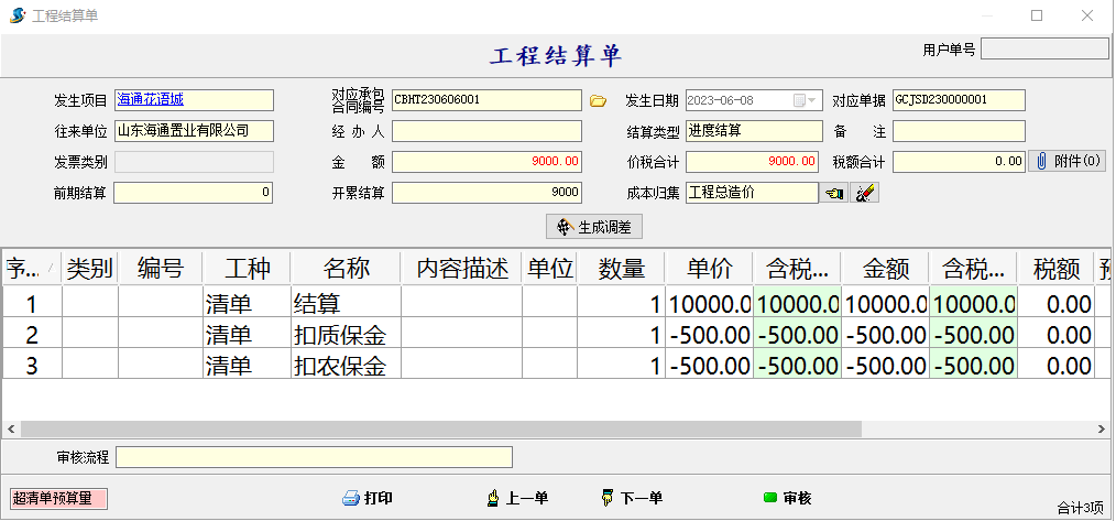 【工程結(jié)算單】增加成本歸集功能,可通過成本計(jì)劃單設(shè)置暫估收入,工程結(jié)算單產(chǎn)生結(jié)算收入,成本利潤表查詢自定義成本、利潤 。