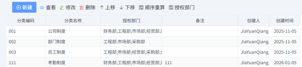 可以根據(jù)關(guān)鍵字,創(chuàng)建人、廢止與否等查詢相關(guān)制度,如下圖所示