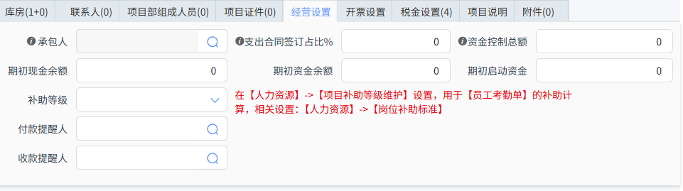 根據項目的具體情況,輸入或選擇,如期初現金余額為項目開賬時的現金余額;期初資金余額為項目開賬時在公司賬上的資金余額;期初啟動資金為項目開賬時公司給該項目設定的可用資金余額。