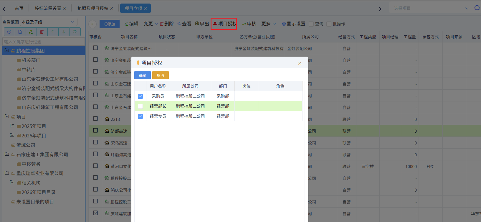 建立項目時,左側選擇項目節點,然后點擊上方添加按鈕,可以建立管理機構,也可以建立項目。如果建立項目,可以手動輸入,也可以選從中標項目中選擇,如下圖所示: