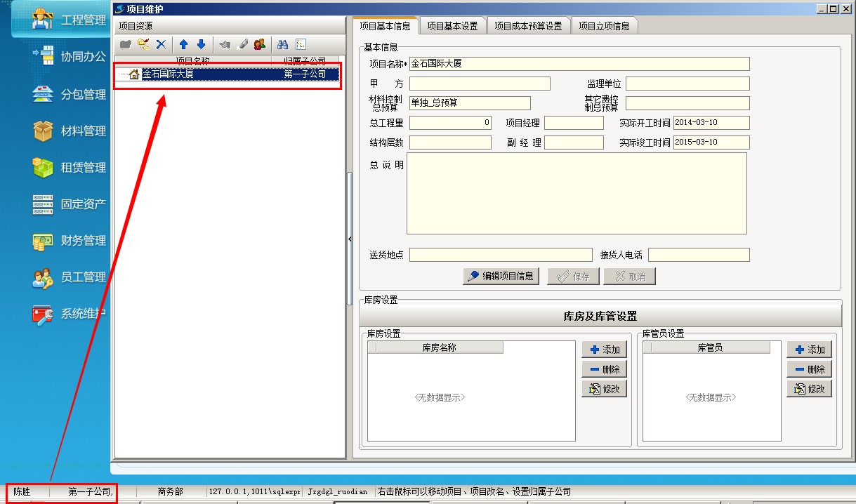 公司選擇窗口中選擇項目所屬的子公司,點確定