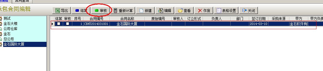 左邊選中新建的項(xiàng)目名稱金石國(guó)際大廈,右邊點(diǎn)擊新建,彈出新建承包合同窗口,錄入合同基本信息,填寫(xiě)合同履約保證金金額,然后保存。